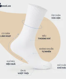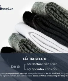 Tất nam cổ trung BaseLux tất cotton co giãn, vớ nữ mềm mại thoáng mát, tất đá bóng kháng khuẩn chống hôi chân