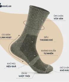 Tất cotton thiên nhiên BaseLux tất cổ cao thoáng khí chống hôi chân, tất nữ mềm mại co giãn, tất nam công sở kháng khuẩn