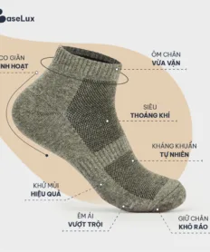 Tất lười nam BaseLux tất cotton thoáng mát, tất lười chống hôi chân, tất lười nữ basic, vớ lười kháng khuẩn khử mùi