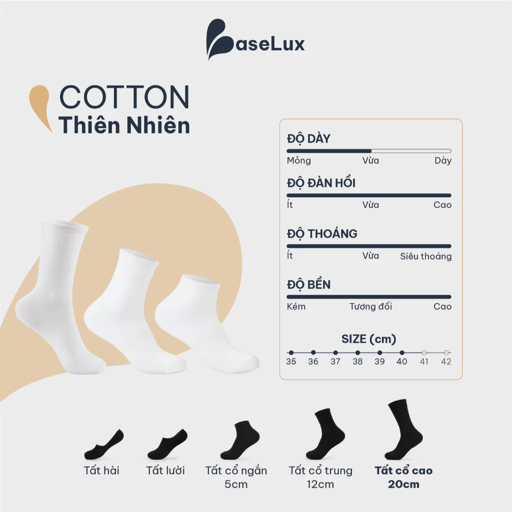👉 Tất BaseLux – được dệt từ Sợi Cotton thiên nhiên & Sợi Spandex cao cấp